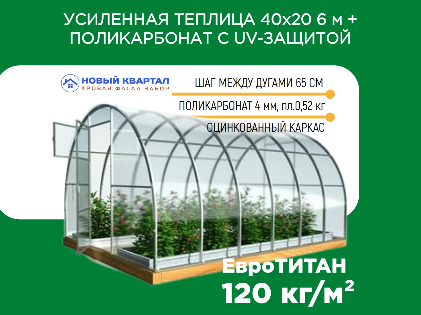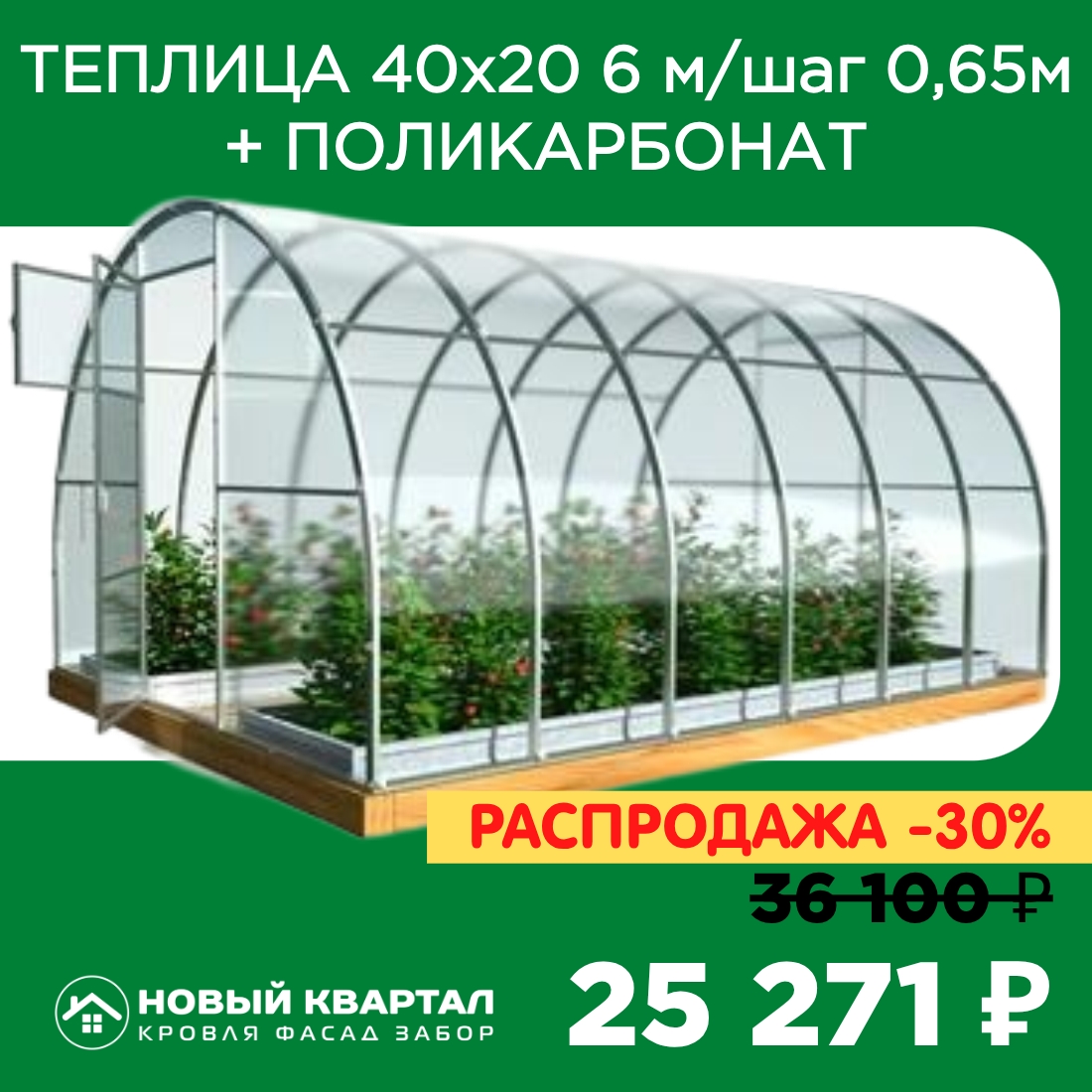 ✅**Теплица усиленная 40х20 (6 м, шаг между дугами — 0,65 м) + поликарбонат 4 мм с UV-защитой**