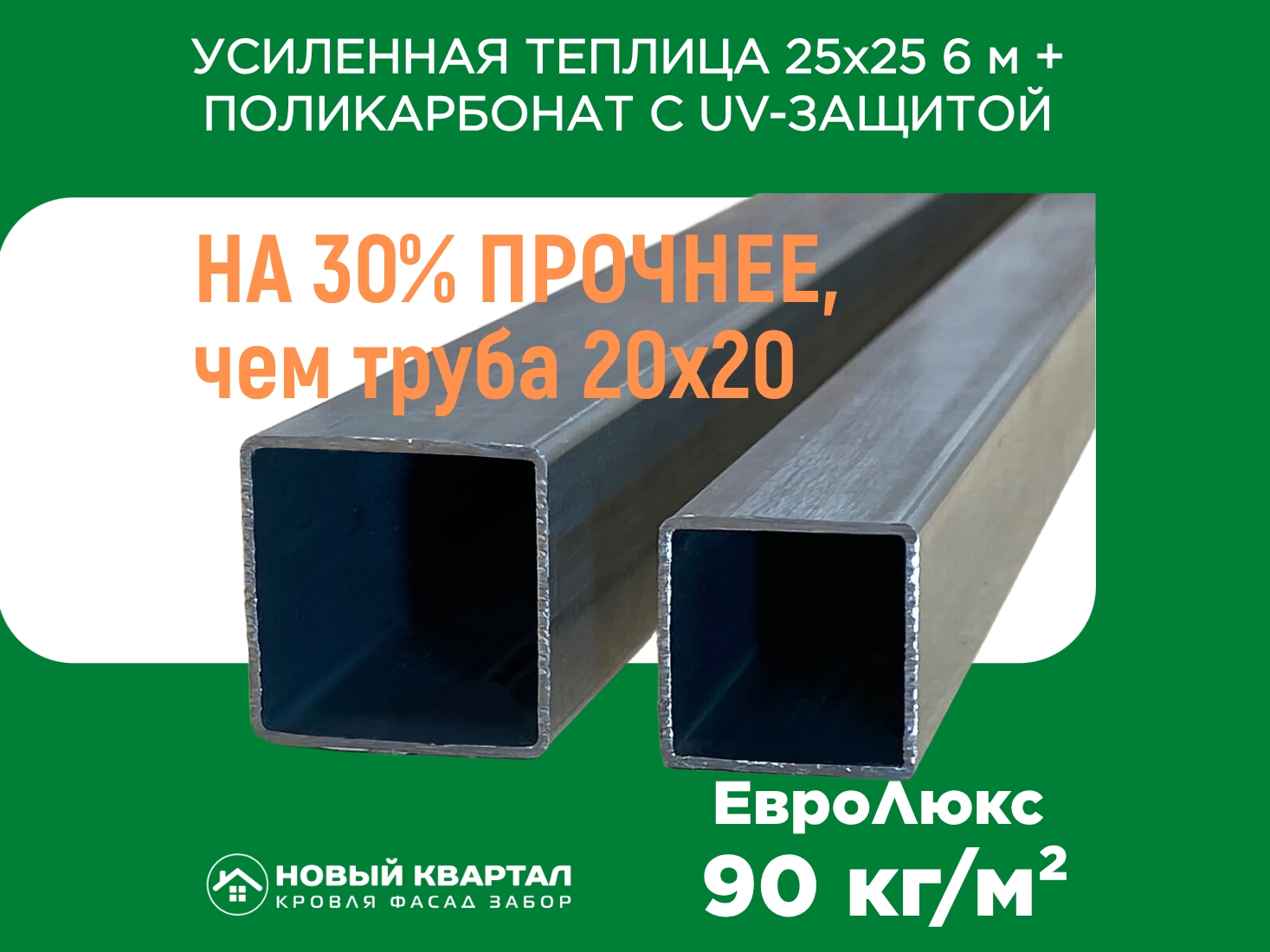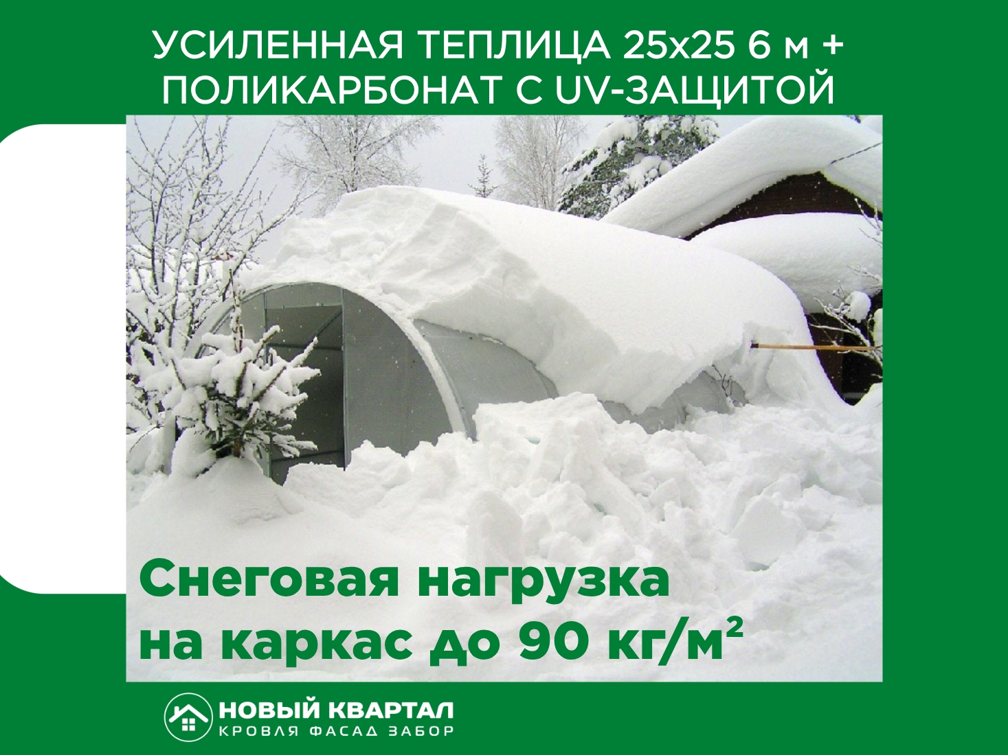 ✅**Теплица усиленная 25х25 (6 м, шаг между дугами — 0,65 м) + поликарбонат 4 мм с UV-защитой**